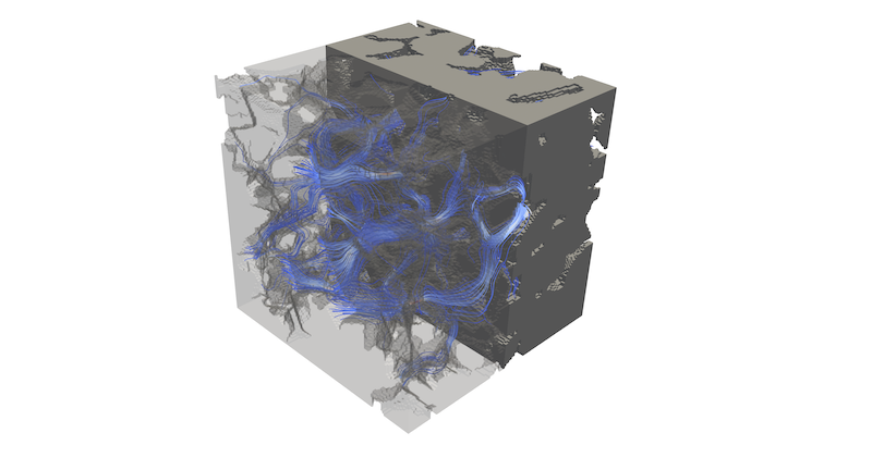 kabs computes the absolute (Darcy) permeability of a porous material from its 3D tomographic image using the Lattice Boltzmann Method (LBM). Given a binary voxel image of the pore space, it solves single-phase incompressible creeping flow, returning results in lattice units or physical units.